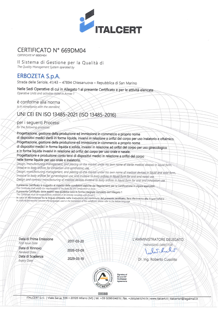 Company with UNI CEI EN ISO 13485