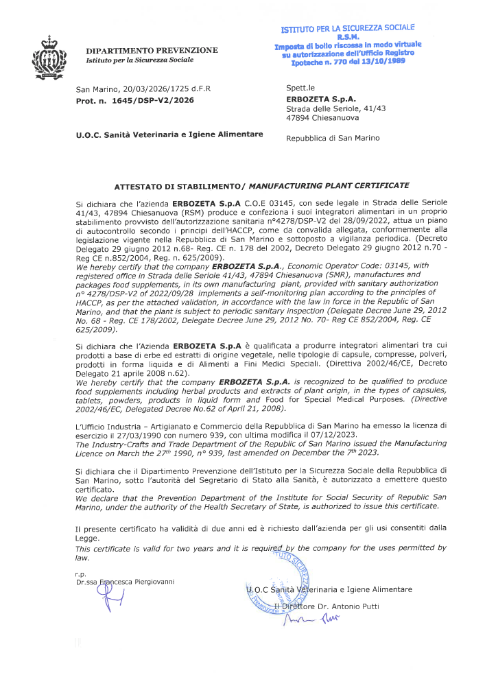 Erbozeta is a certified company